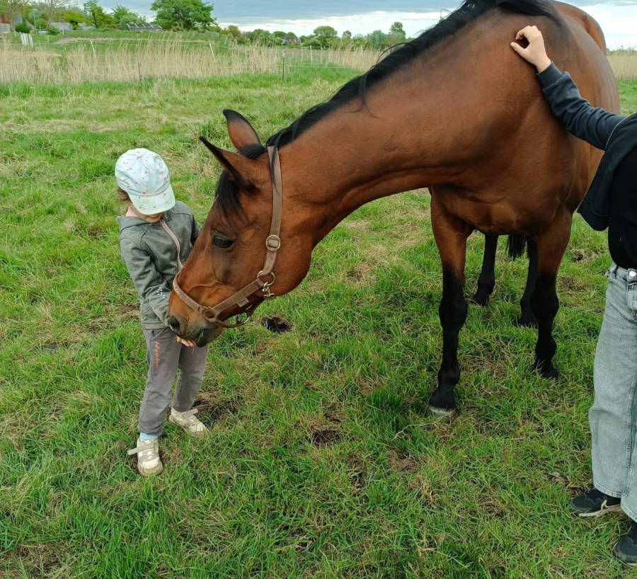 Ende August 2025 meldete sich Sabrina bei uns. Sie musste sich von ihrer 19jährigen, verletzungsbedingt nicht mehr reitbaren Holsteiner Stute DUFFY trennen... niemand hatte einen Platz für sie und zum Züchter oder gar zum Schlachter sollte sie natürlich auf keinen Fall. So kam Duffy zu uns und macht uns seitdem viel Freude...